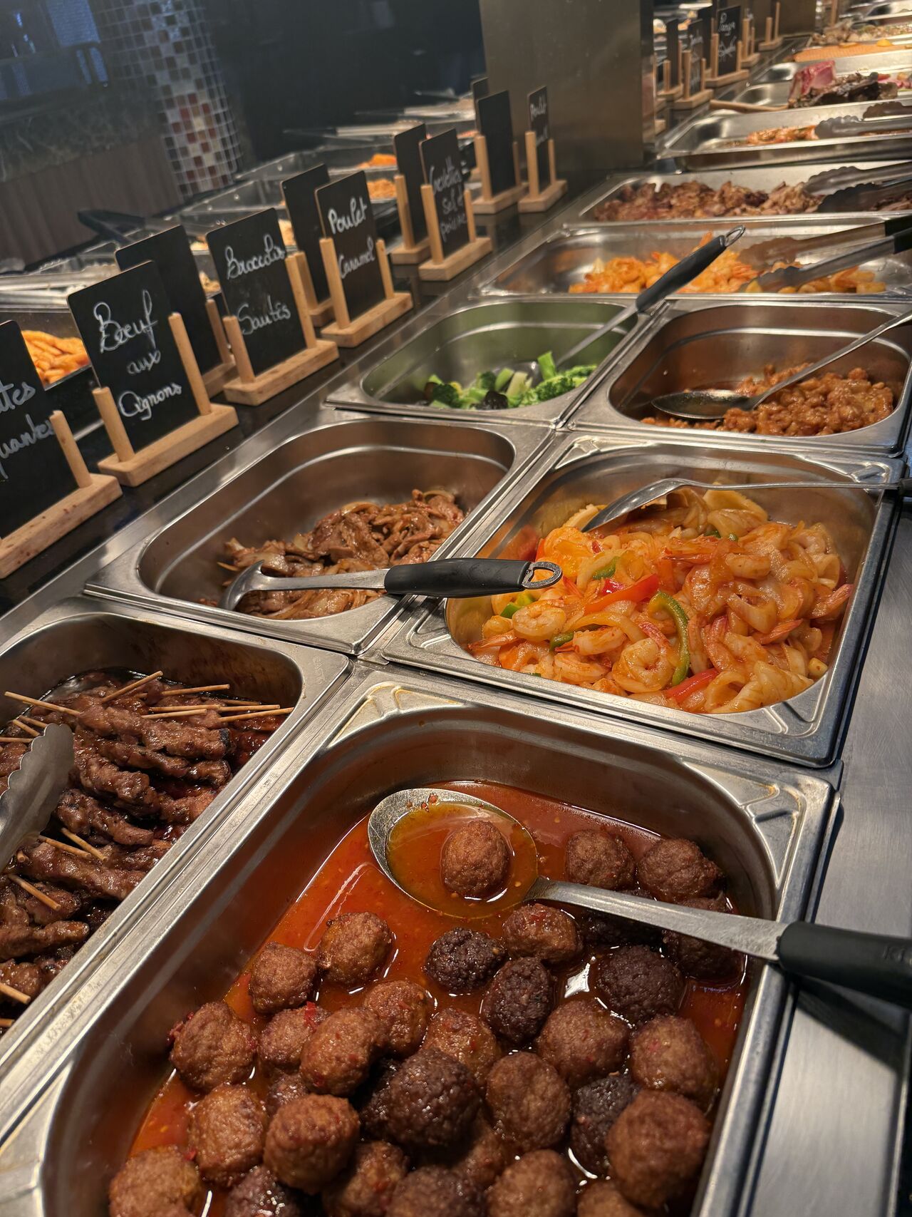 Plongez dans un véritable voyage culinaire au cœur de l’Asie grâce à notre buffet à volonté généreux et savoureux 🤩. Découvrez une large sélection de spécialités chinoises et asiatiques : nems croustillants 🥟, beignets de crevettes 🍤, nouilles sautées 🍜, riz cantonais 🍚, viandes grillées 🔥, plats en sauce parfumés, ainsi qu’un espace wok pour des assiettes préparées à la minute selon vos envies 👨🍳✨